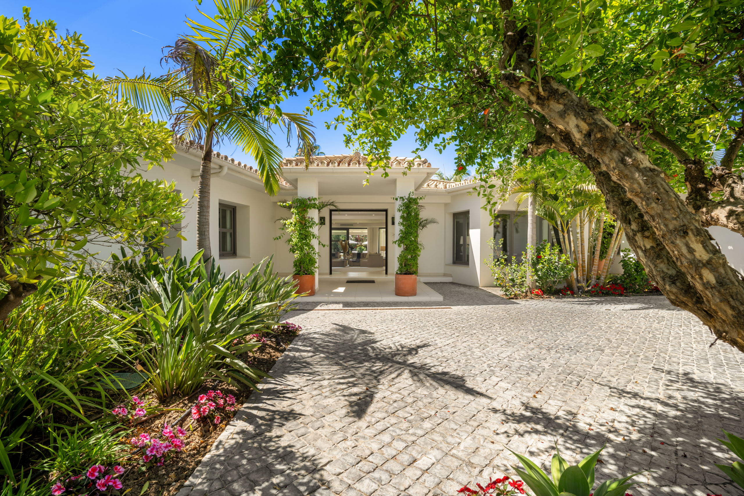 The landscaping has been crafted by Fantastic Garden, integrating a remarkable selection of mature and exotic species. The grounds boast exceptional botanical richness, giving the home a sense of exclusivity and natural splendour.